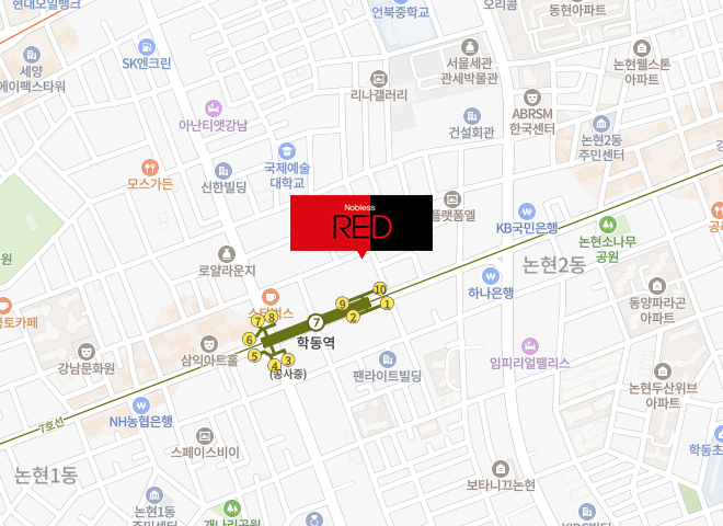 노블레스 레드 오시는 방법을 안내해드립니다.